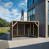 Dieser Raucherunterstand ist nicht nur funktional, sondern auch eine stilvolle Ergänzung für jeden Außenbereich. Die Kombination aus schwarzer Schindel und Naturholz sorgt für einen modernen und zeitlosen Look. Ideal für Gewerbe, Gastronomie und den privaten Gebrauch. Der Raucherunterstand fügt sich optimal in unterschiedliche Umgebungen ein und bietet Rauchern einen komfortablen, geschützten Ort.