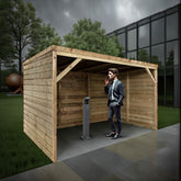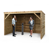 Suchen Sie einen stilvollen und praktischen Raucherbereich? Dieser hochwertige Räucherschuppen bietet die perfekte Lösung zum Räuchern im Freien, sowohl für Unternehmen als auch für Privatpersonen. Diese Raucheranlage besteht aus imprägniertem Kiefernholz und ist in einer modernen Kombination aus Schwarz und natürlicher Holzfarbe gehalten. Sie bietet Rauchern einen langlebigen und attraktiven Ort.