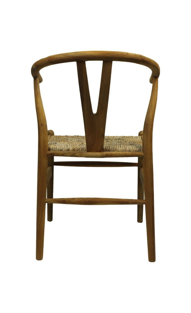 Cette belle chaise de salle à manger est fabriquée à partir de teck naturel et de feuille de bananier, avec des détails soigneusement conçus qui font de la chaise une œuvre d'art. Cette composition spéciale de matériaux confère à la chaise son aspect et sa résistance uniques.