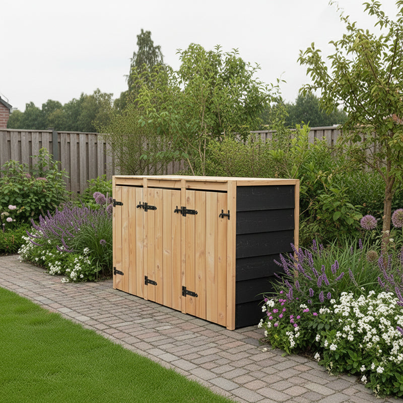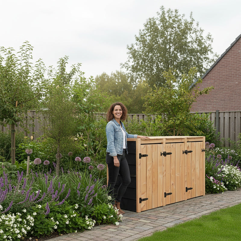 La conversion Kliko Fleur est fabriquée en bois Douglas durable, qui est non seulement esthétique, mais également sans entretien. Cela signifie que vous n'avez pas besoin de passer du temps à entretenir votre stockage de conteneurs, ce qui vous laisse plus de temps pour d'autres choses. Les charnières et serrures noires confèrent à la conversion un aspect élégant et moderne qui s'intègre parfaitement dans n'importe quel jardin. Les matériaux de haute qualité sont conçus pour durer des années, offrant un excellent rapport qualité-prix. Vous pouvez être sûr que cette conversion résistera à diverses conditions météorologiques, gardant ainsi votre investissement bien protégé. Cela fait de la conversion Kliko Fleur non seulement un choix pratique, mais aussi durable.
