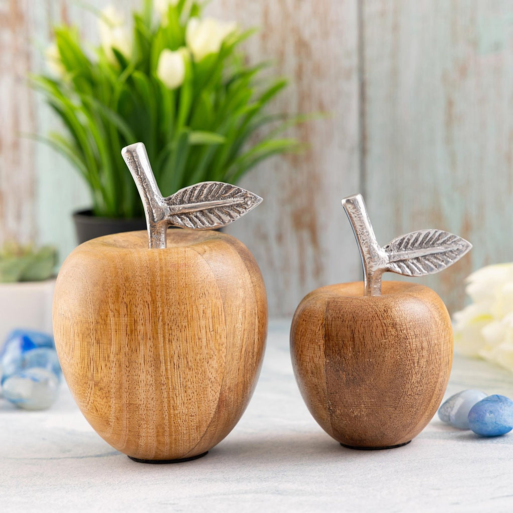 Bestel nu de Dekofiguren 2er Set Apfel H15/13x9/8cm Aufsteller Apfel-Optik Mangoholz Aluminium en geef je interieur een unieke uitstraling!