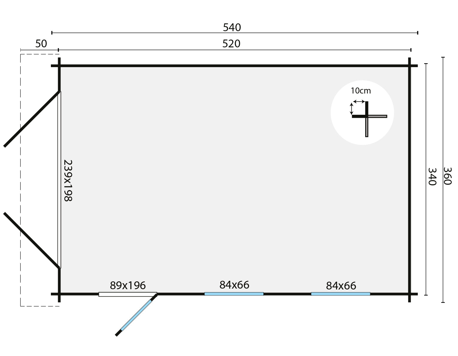 Met een breedte van 540 cm en een lengte van 360 cm biedt de Garage Geir voldoende ruimte voor al jouw spullen. Of je nu een auto, fietsen, tuinmeubelen of gereedschap wilt opbergen, deze garage biedt de perfecte oplossing. De ruime afmetingen maken het ook mogelijk om de garage te gebruiken als werkplaats of hobbyruimte.
