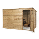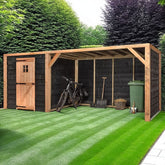 De DHZ berging is vervaardigd uit hoogwaardig douglas hout, wat bekend staat om zijn duurzaamheid en weerbestendigheid. Dit houtsoort is van nature bestand tegen schimmels en insecten, waardoor uw berging jarenlang meegaat zonder dat u zich zorgen hoeft te maken over onderhoud. Het onbehandelde hout geeft een natuurlijke uitstraling die perfect in uw tuin past. U kunt ervoor kiezen om het hout te behandelen met een beits of verf, zodat het nog beter bestand is tegen de elementen. Hierdoor kunt u de berging helemaal naar uw eigen smaak en stijl aanpassen.